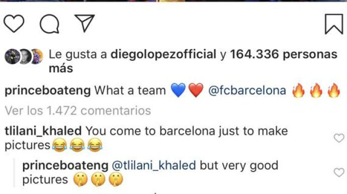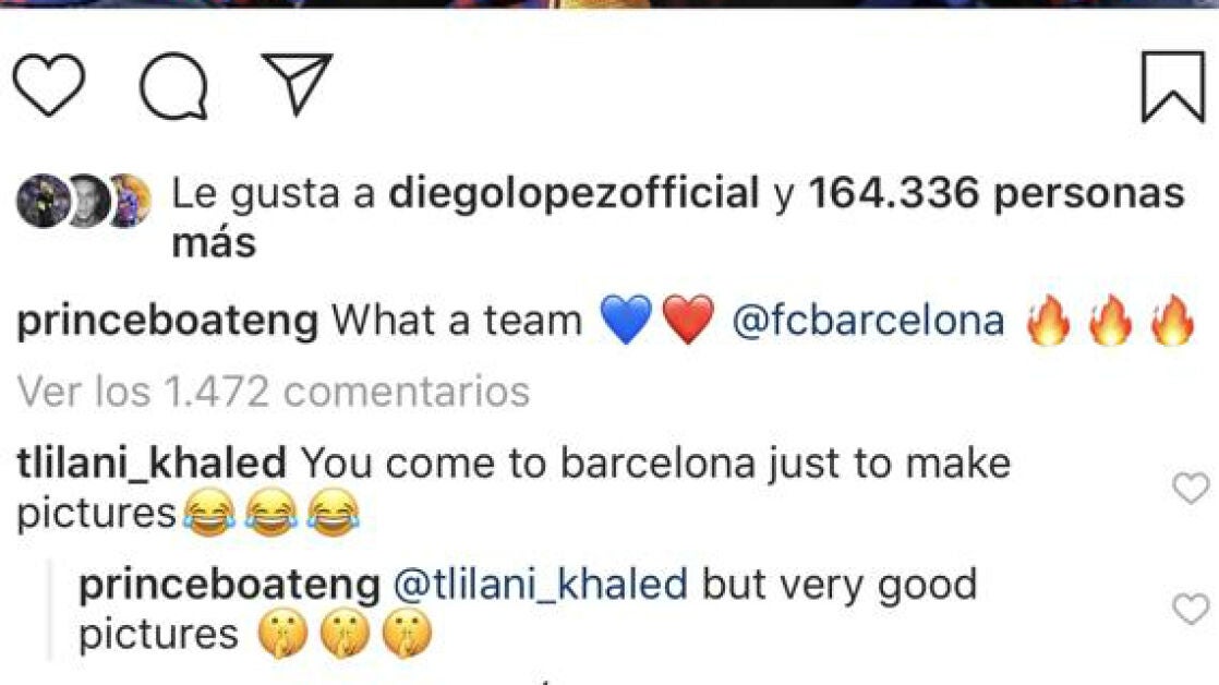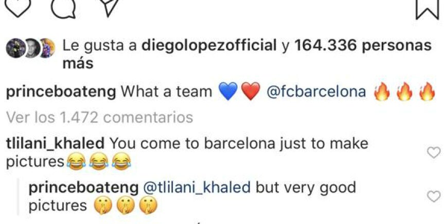 Podía haberle salido 'cara' la foto de la celebración del Barça que Boateng ha compartido en su Instagram... pero al final ha sido todo lo contrario. "Has fichado por el Barcelona para hacerte fotos", le dijeron, pero la sublime respuesta hizo que el 'zasca' cambiara de dirección. "Pero muy buenas fotos", comentó el ghanés.