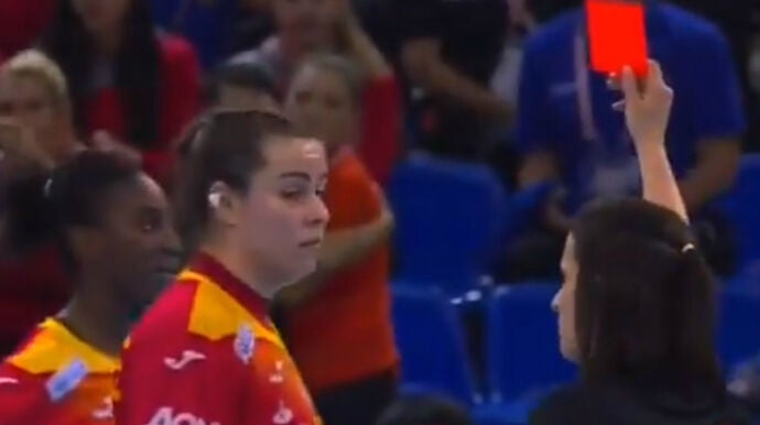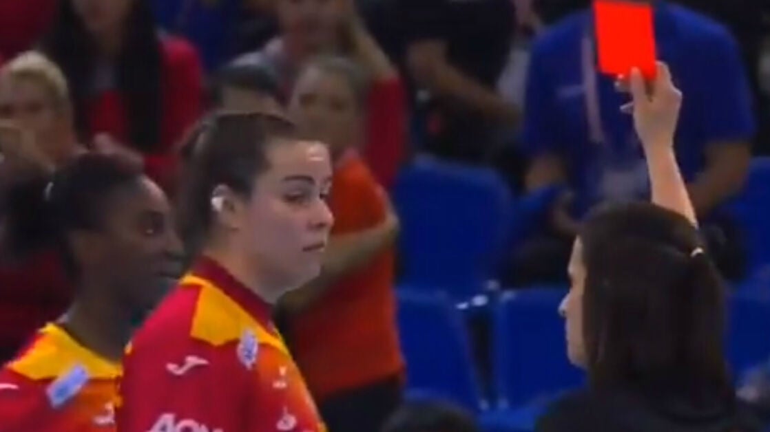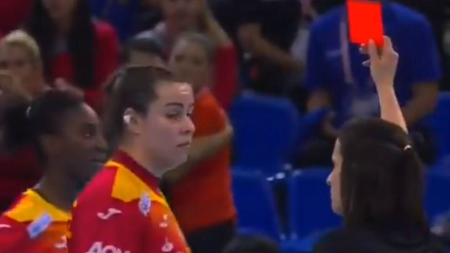 La jugadora bloca el pase de la arquera holandesa fuera del área, y el mundo del balonmano no solo no entiende que se señalara lo que se señaló sino que además tilda de "robo" lo sucedido, aparte de que dicen que, mínimo, debería haberse revisado la acción.