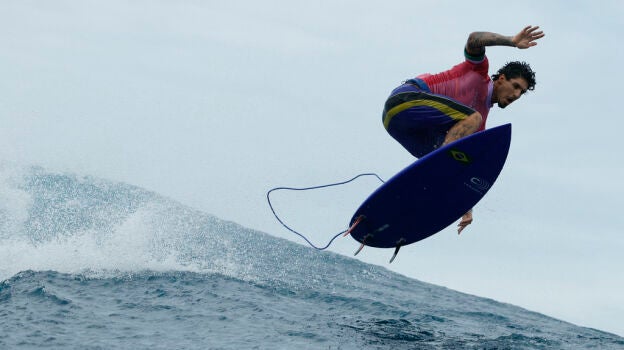 Fue en la tercera ronda cuando el brasileño derrotó a su contrincante con una ola de cinco metros que le catapultó al cielo de Tahití. Como si levitara, alzó el dedo índice. Consiguió un 9,90 de puntuación, la mejor de la historia del surf en unos juegos.