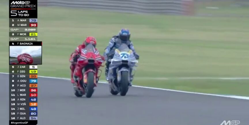 Todo hacía pensar que Marc Márquez iba a tener una carrera relativamente cómoda en el Circuito Termas de Río Hondo. Nada más lejos de la realidad. El de Ducati cometió un error al comienzo de la carrera abriéndose mucho en una curva y eso permitió que su hermano Álex le arrebatara la cabeza de carrera.