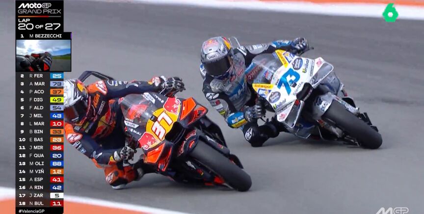 Aún así, ambos dejaron una gran pelea en la que, en ese justo momento, estaba en juego el podio. Por desgracia para ambos, Fabio Di Giannatonio terminó adelantándoles para subirse al podio del circuito Ricardo Tormo.