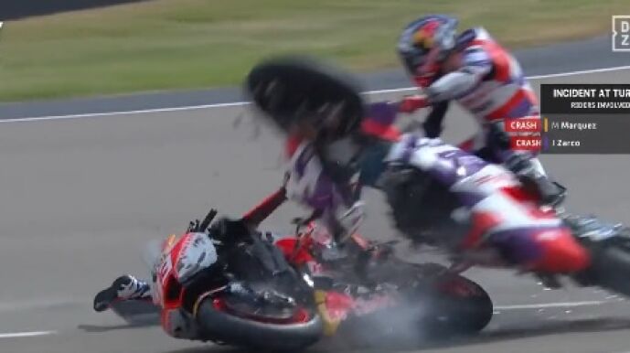 El brutal accidente de Marc Márquez: ¡se llevó por delante a Zarco!