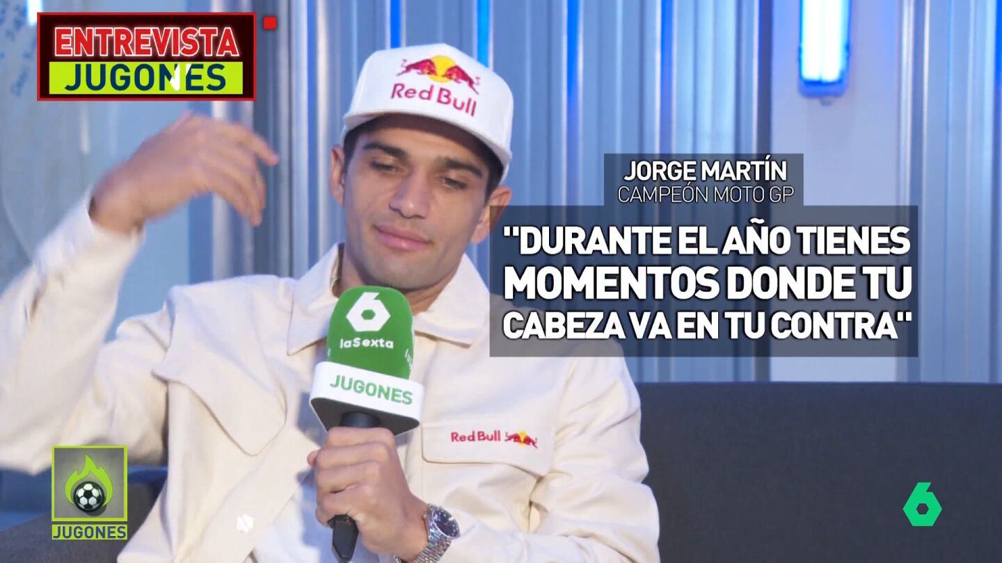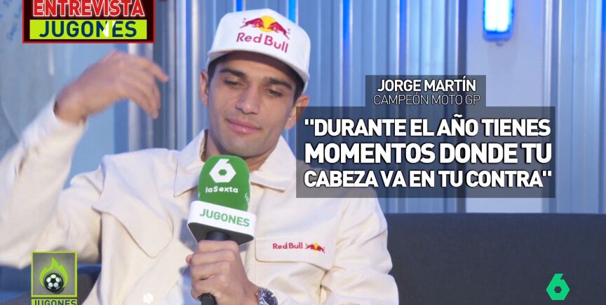 Jorge Martín es campeón del mundo de MotoGP con la Pramac, con la satélite de Ducati. Y le ha contado a 'Jugones' cómo un cambio de mentalidad del año pasado a este ha sido clave para acabar consiguiendo los éxitos. Reconoce que ha tenido "dudas" y que a veces su cabeza ha ido en "su contra".