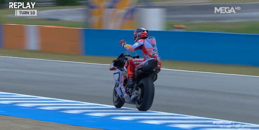 Marc Márquez ha logrado una pole épica en Jerez. Es épica porque es la primera en más de un año, porque es la primera con Ducati y, sobre todo, porque la ha logrado tras salvar una caída que parecía inevitable.