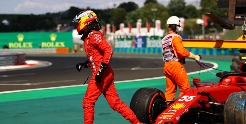 Carlos Sainz va a sufrir, y mucho, en una de las carreras más duras de toda la temporada. El madrileño, que bien pudo ser quinto, sale 15º en Hungría tras un choque contra las protecciones.