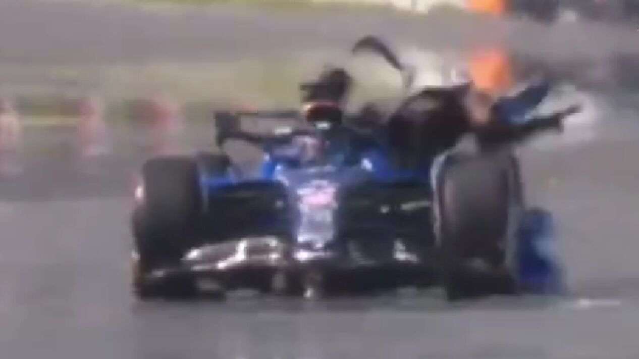 La cubierta motor de su Williams salió volando por los aires mientras rodaba a más de 300 kilómetros por hora, perdiendo toda la aerodinámica y dejando al descubierto todo el engranaje del Williams, algo que no ha tenido que hacer mucha gracia en Grove.