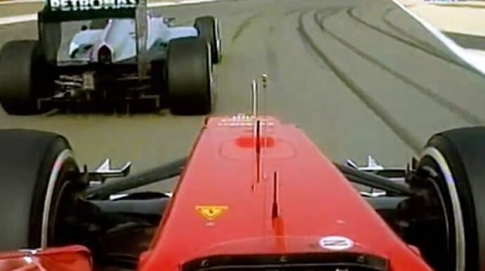 En el Gran Premio de Bahrein de 2012 Alonso se encontró con Nico Rosberg en pista: "Tienes que dejar espacio...".