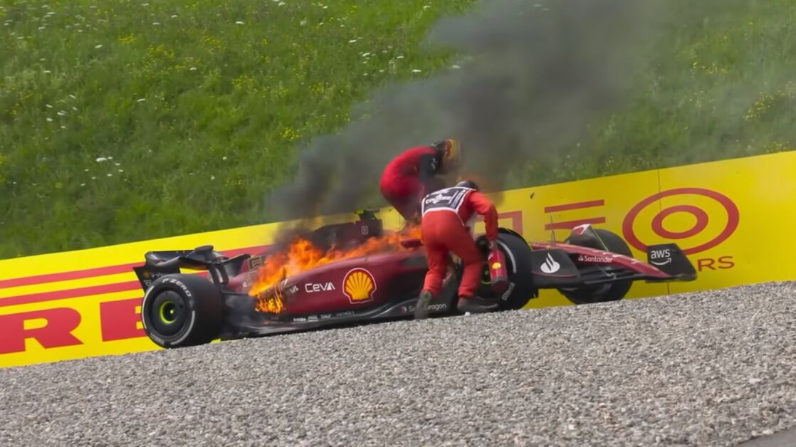 Si en el último Gran Premio en Silverstoneel accidente de Guanyu Zhou nos dejó helados, también se vivieron momentos de tensión este fin de semana en el Gran Premio de Austria. El protagonista esta vez fue Carlos Sainz. El piloto de Ferrari vio como su coche rompía motor cuando iba a ponerse segundo para poco después comenzar a arder en la parte trasera.