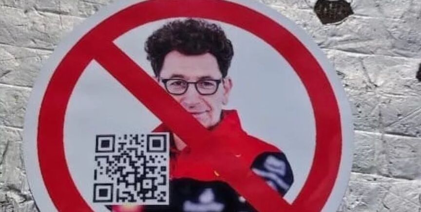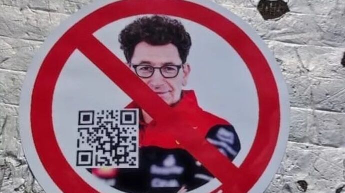 Durante el fin de semana, han aparecido varias pegatinas alrededor del circuito de Monza con una fotografía de Binotto, con una señal de prohibido encima y con el lema 'Binottout'. Además, hay un código QR que, cuando se escanea, lleva a una página web en la que se pide a los que entran que, "si quieren parar de sufrir cada domingo", deben firmar la petición que tienen para echar a Binotto de Ferrari.