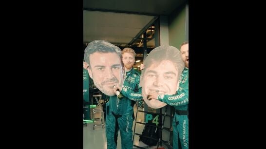 Así que sí. Después de un trabajo bien hecho tocaba la pertinente celebración. Después dela efusividad de Alonso con sus mecánicos, en el box sacaron las 'cabezas' gigantes de Fernando y de Lance Stroll para tomarse unas cervezas.