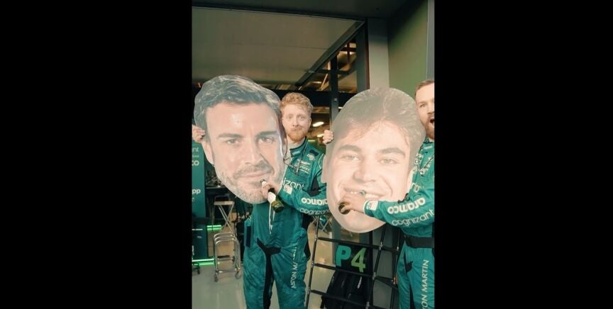 Aston Martin es un equipo feliz. Y se nota. Se nota mucho. Alegría total y absoluta en el box del equipo verde tras otro podio de Fernando Alonso. Las cervezas, y las 'cabezas', protagonistas.