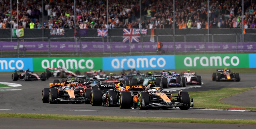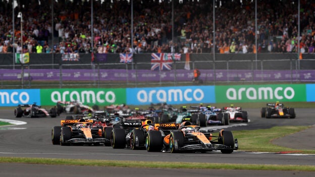Las buenas sensaciones del equipo papaya se confirmaron en Silverstone. Allí, Lando Norris se quedó a un par de décimas de la pole, firmada una vez más por Max Verstappen, y Oscar Piastri le acompañó en la tercera plaza en la parrilla. Mientras tanto Fernando Alonso llegó a la Q3 a duras penas y clasificó noveno.