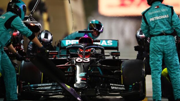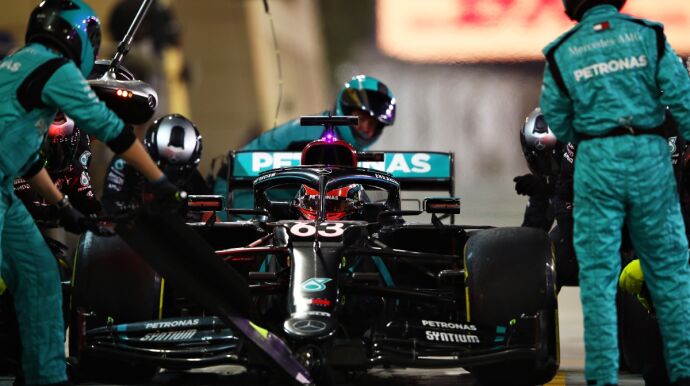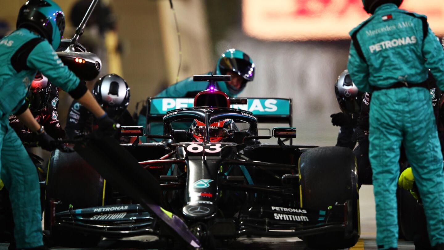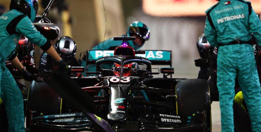 'Maravillosa' vuelta 63 la realizada por el equipo Mercedes en Sakhir. El equipo paró en boxes a Russell y a Bottas, que iban primero y segundo. Con uno se equivocaron de neumáticos y al otro le salió fuego de los frenos.