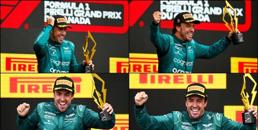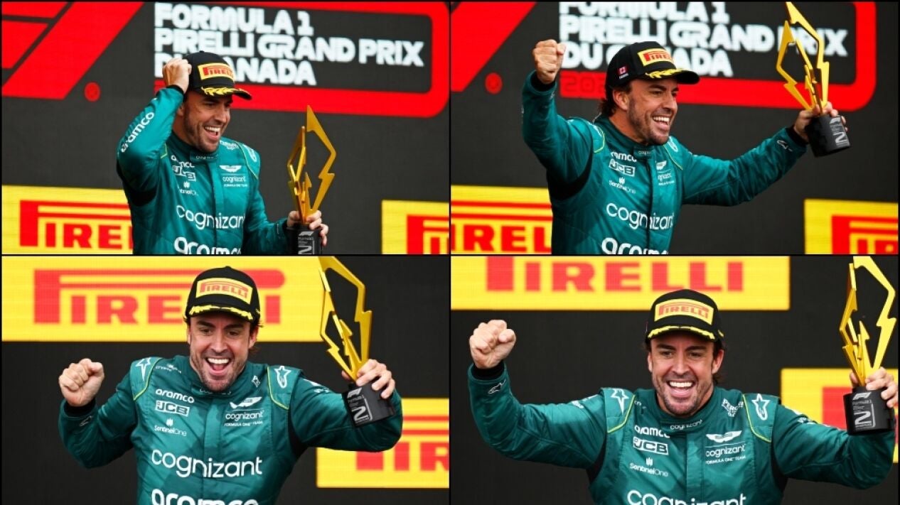 Con el segundo puesto en Montreal, el asturiano realizó un gesto propio del videojuego 'Mario Kart', el de Donkey Kong. Es el ejemplo claro de que Alonso está desatado con Aston Martin y ha vuelto a disfrutar como desde hacía tiempo no lo hacía.