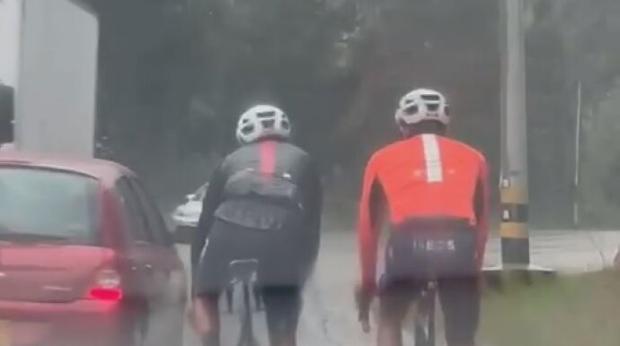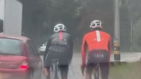 El ciclista colombiano del Ineos denunció a través de su cuenta de Instagram el temerario adelantamiento de un conductor mientras entrenaba bajo la lluvia en Cundinamarca.