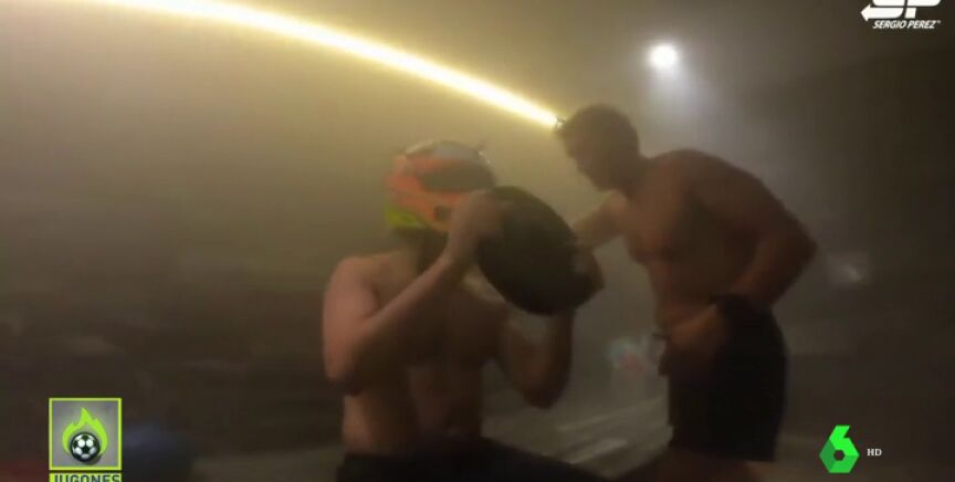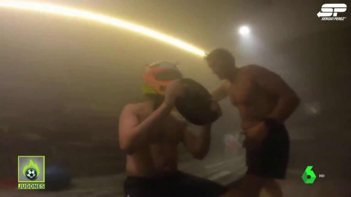 Por eso, 'Checo' Pérez ha optado por hacer una locura: entrenar en una sauna. Una preparación al límite que se refleja en la cara el piloto mexicano.