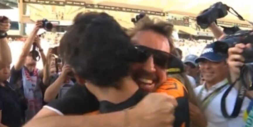 El emotivo abrazo de Fernando Alonso a Gabriel Bortoleto, campeón del mundo de F2