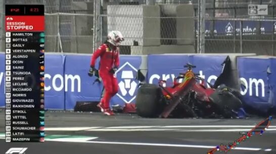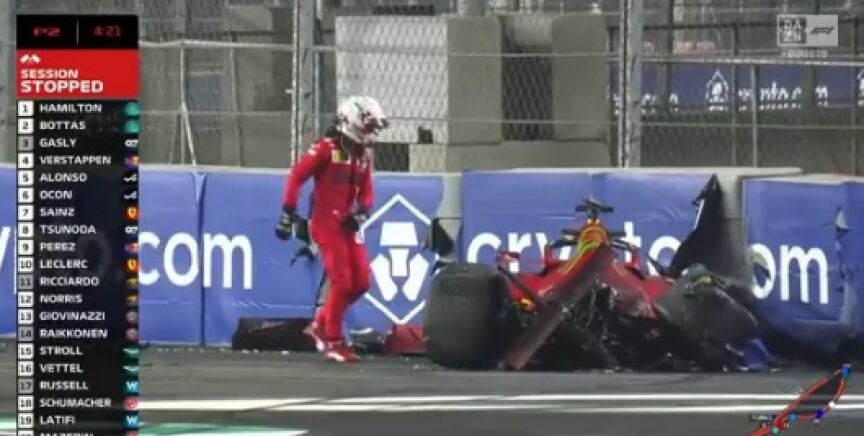¡Qué accidente para recordar a qué velocidad se va en este trazado! Piloto OK ✅#SaudiDAZNF1 🇸🇦 pic.twitter.com/RcZNFBtfMR