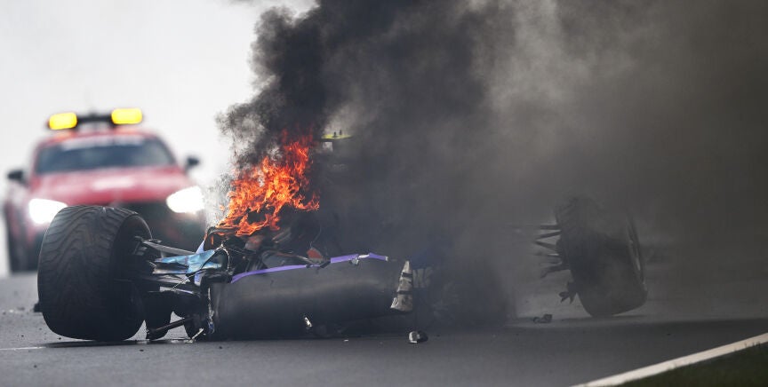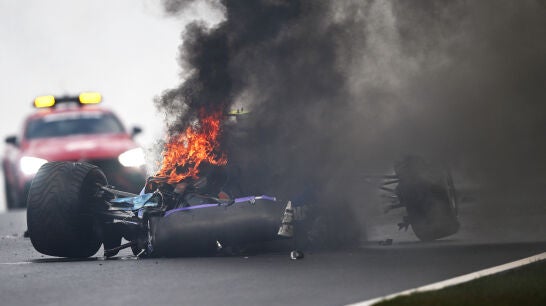 Como consecuencia del impacto se produjo una fuga en la zona del motor que acabó provocando un incendio en la parte trasera de su coche. Afortunadamente, Logan Sargeant pudo escapar a tiempo para ponerse a salvo. Eso sí, seguro que las arcas del equipo Williams no salen tan bien paradas.