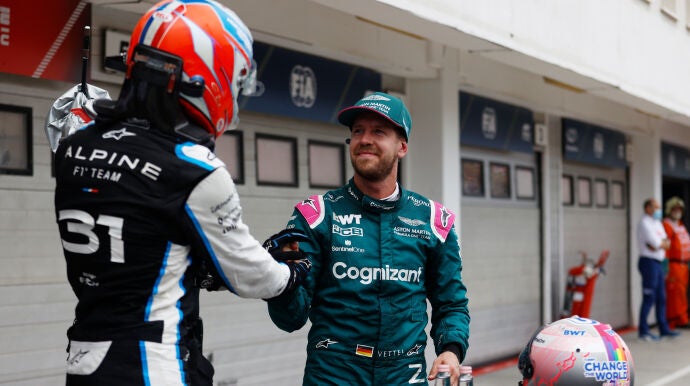 Durante el inicio de la carrera, fue Esteban Ocon su mayor rival, con quién peleó bastante hasta que el francés entró en la vuelta 14 a boxes. El de Alpine acabaría séptimo y Vettel décimo, tras una mala estrategia por parte de Aston Martin.