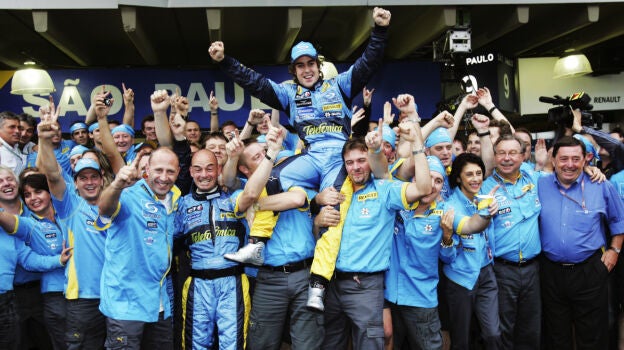 Alonso abandonó el equipo después de ser bicampeón y se mudó a McLaren. Una aventura que sólo duró un año para volver a Renault en 2008. El último año en el que compartió box con Pallás.