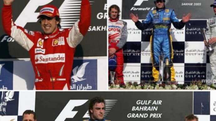 En 2005 y 2006 con el equipo Renault y en 2010 con el equipo Ferrari. Sus tres victorias en Baréin. Desde entonces ningún otro piloto ha logrado tantos triunfos como el bicampeón del Gran Circo.