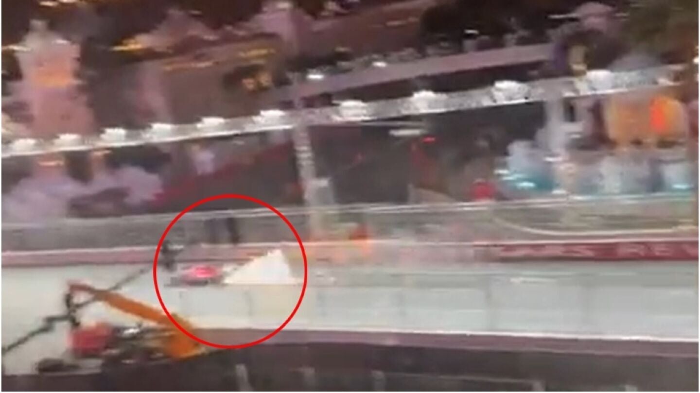 Un problema que, por si fuera poco, ha afectado de manera directa al Ferrari de Carlos Sainz. Ha sido precisamente el piloto madrileño el que se ha llevado puesta una alcantarilla y que, por ello, ha destrozado por completo su monoplaza.