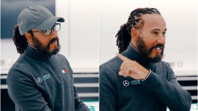 De la mano de 'UBS', patrocinador de Mercedes, el heptacampeón del mundo ha aprovechado la visita de dos niños y una niña a la fábrica de la escudería en Brackley para ataviarse como un ingeniero más.
