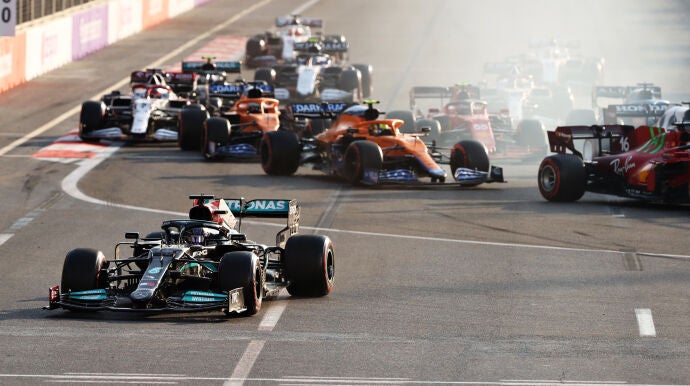 Un error "humillante". Así ha calificado Lewis Hamilton su grotesco fallo en la resalida de Bakú. En una 'mini carrera' de dos vueltas, con Max Verstappen fuera de juego tras un reventón de su neumático trasero izquierdo y Checo Pérez liderando del GP de Azerbaiyán, el heptacampeón del mundo pecó de ambicioso y, lejos de valorar los 18 puntos, quiso jugársela a todo o nada. Y perdió.