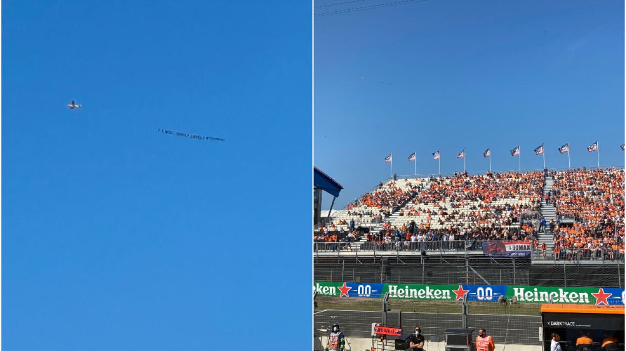 Una avioneta ha sobrevolado el circuito de Zandvoort portando el siguiente mensaje: "Siete veces campeón del mundo. 'Simply lovely".