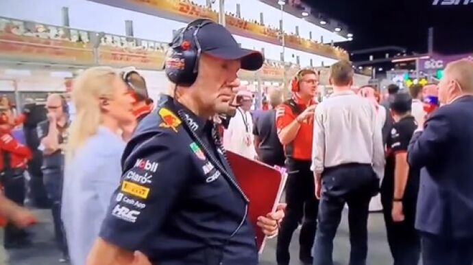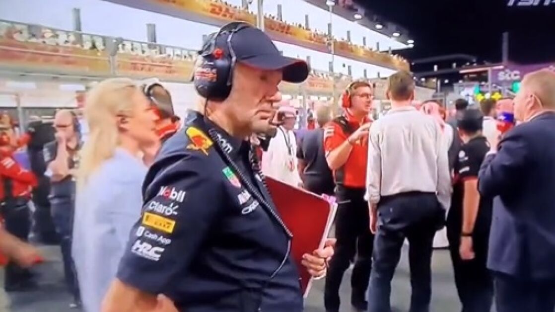 Ese coche verde es el más 'espiado' de la parrilla. Adrian Newey, 'gurú de Red Bull, ha dejado una de las imágenes más virales en el Gran Premio de Arabia Saudí: observando el monoplaza durante diez segundos hasta que recibe el saludo de otra persona en el paddock.