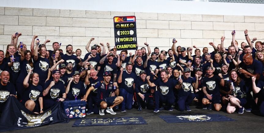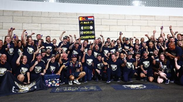 Red Bull se ha librado. Se ha librado de lo que habría sido, muy posiblemente, una sanción de la FIA en el GP de Qatar por la celebración del tercer Mundial de Max Verstappen. Porque el neerlandés ya es campeón. Porque lo fue un sábado. Y porque aún queda fin de semana en tierras qataríes. Por eso, algo cambió en el proceder habitual a la hora de festejar en el equipo de las bebidas energéticas.