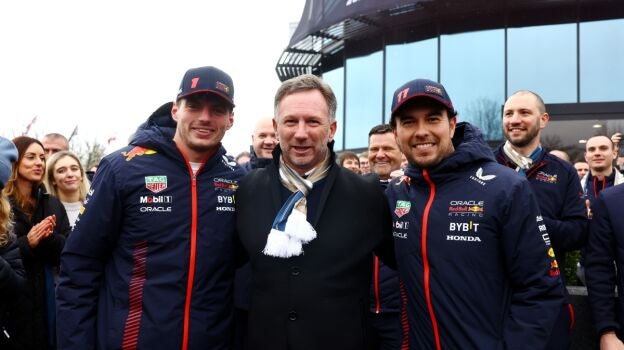 El británico estuvo presente en la presentación del nuevo RB20 y lo estará en los test de pretemporada de la semana que viene, algo que no escapa de la polémica y que Verstappen y Pérez no han podido obviar.