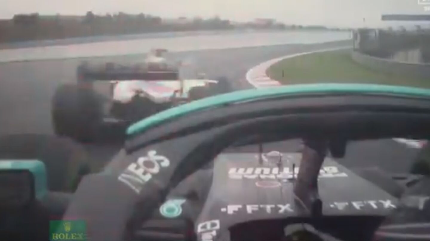 El piloto ruso de Haas ha argumentado que no veía nada por los retrovisores debido al spray, la lluvia y la suciedad de pista: "Lo siento mucho por Lewis. No podía ver nada por los espejos".