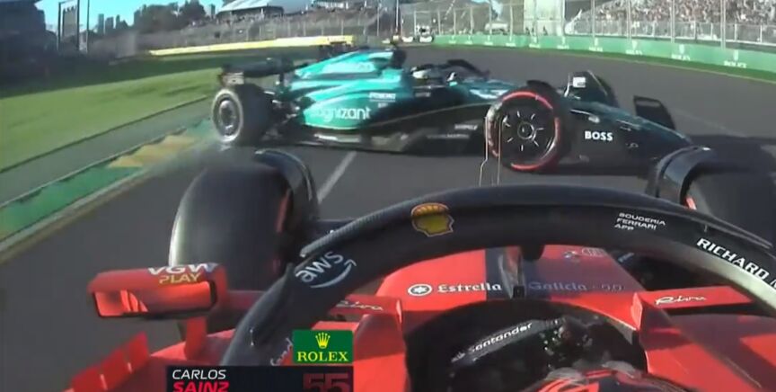 ¡Así fue la acción entre Fernando Alonso y Carlos Sainz que acabó con el asturiano fuera! 💥#AustraliaDAZNF1 🇦🇺 pic.twitter.com/GEUN0B27I4