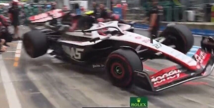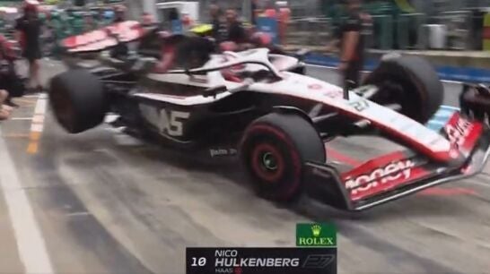 Pudo acabar en tragedia: el peligrosísimo momento de Hulkenberg con un mecánico de Haas en el pit lane
