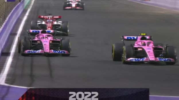 Una de las batalla más increíbles del Gran Premio de Arabia Saudí la protagonizaron dos compañeros, Fernando Alonso y Esteban Ocon con el equipo Alpine, que hace un año mantuvieron un duelo que pudo acabar con las aspiraciones del equipo francés en aquella carrera.