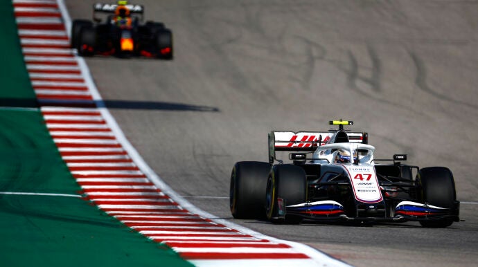 En la parte decisiva de la carrera de Austin, con Lewis Hamilton acechando a Max Verstappen con ruedas más frescas, un invitado inesperado se metió en la pelea: el Haas de Mick Schumacher.