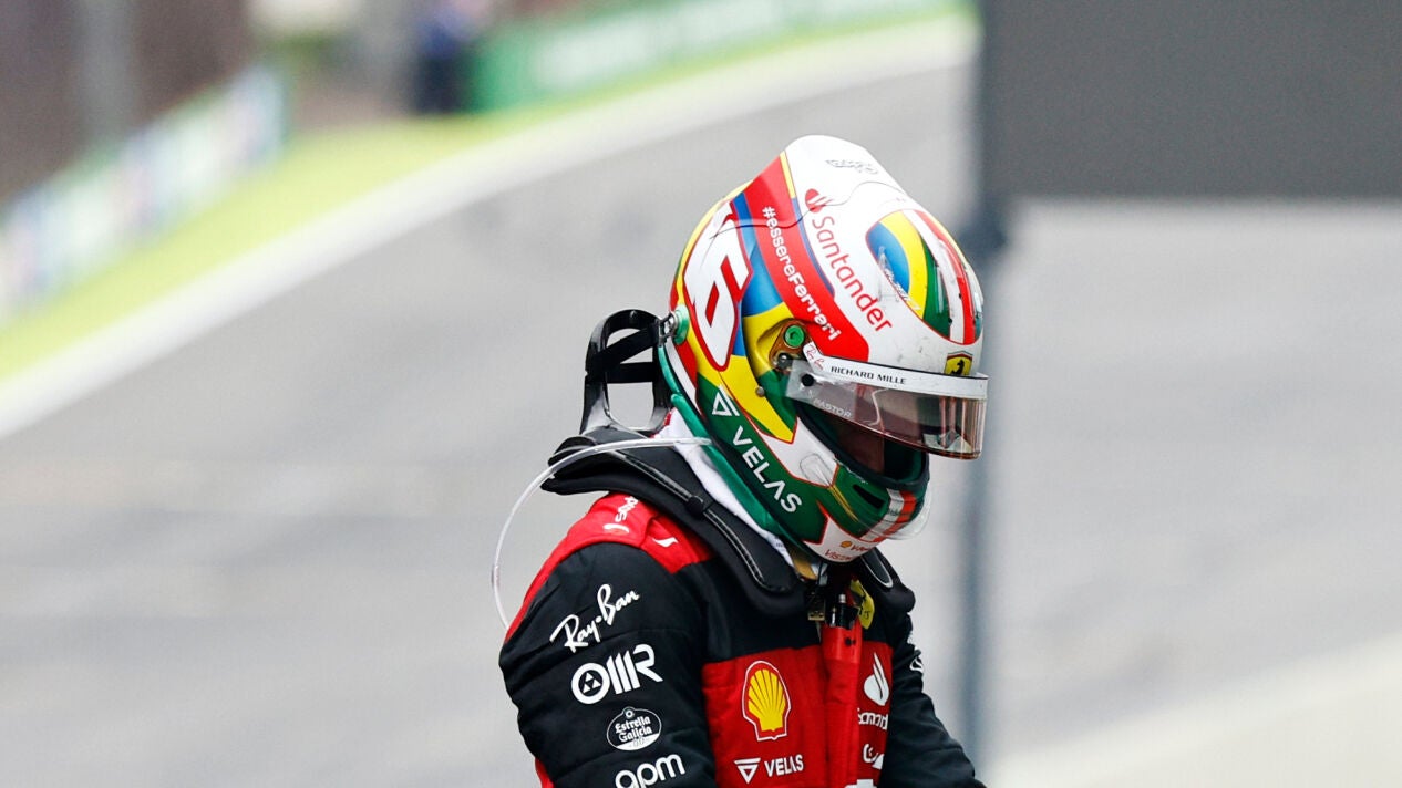 Pero Ferrari no se lo permitió. El monegasco fue cuarto y Sainz, tercero. Al finalizar el GP de Brasil se sucedieron las felicitaciones por la radio y fue ahí cuando Leclerc se hartó.