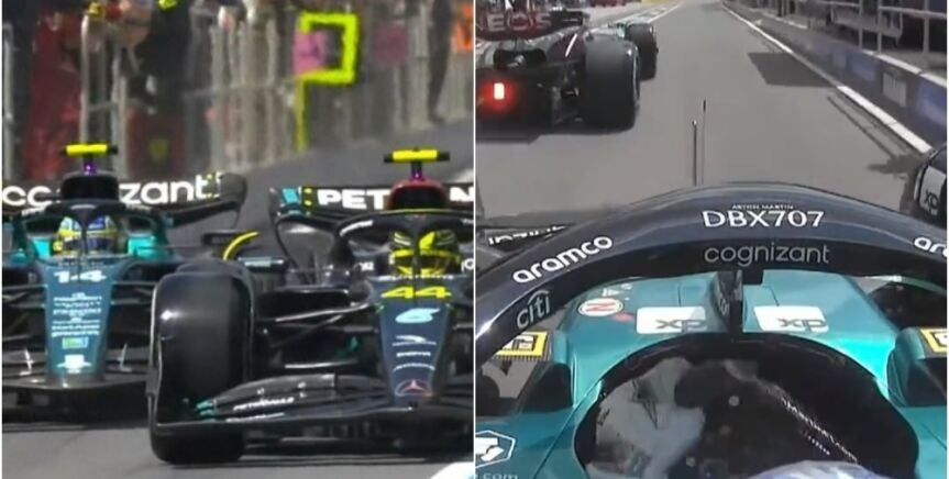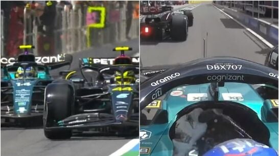 Tanto Lewis Hamilton, que marchaba segundo, como Fernando Alonso, que iba tercero, pararon en la misma vuelta a cambiar neumáticos. Aston Martin fue bastante más rápido en boxes, pero el de Mercedes no permitió un adelantamiento en el 'pit-lane'.