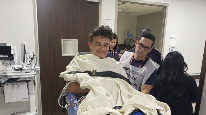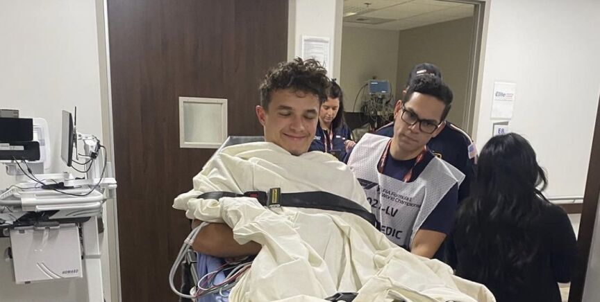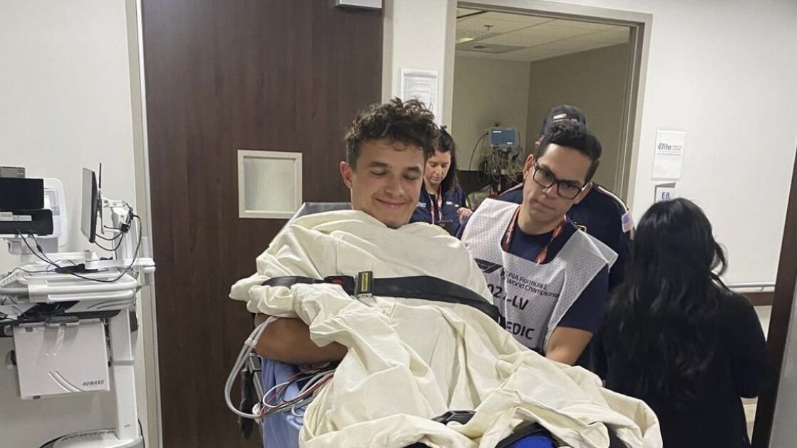 Lando Norris compartió un mensaje y una imagen desde Las Vegas. El inglés sufrió un gran accidente nada más comenzar el Gran Premio, que le llevó directo al Centro Médico Universitario.