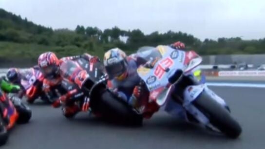 Entre tanta moto, el siete veces campeón del mundo y Maverick Viñales impactaron de forma leve manteniendo, eso sí, el equilibrio y sus respectivas motos en pista.