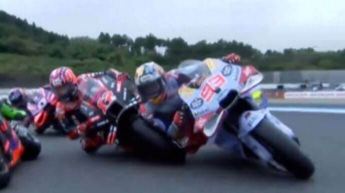 La lucha entre el español y el italiano volvió a dar que hablar. Bastianini subió el ritmo en las últimas vueltas pero Marc fue capaz de aguantar a pesar de que 'la Bestia' le seguía muy de cerca.