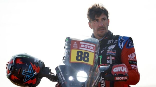 Con dificultad para andar, el de Torreblanca volvió a competir la sexta etapa, con el apoyo de todo su equipo. Hoy, con modificaciones en la moto, el manillar “un poco para atrás” y tras “haber ablandado un poco más la suspensión”, según comenta, continúa en la competición. Hoy, en la séptima etapa, ha sido tercero, a tan solo 2:51 del ganador del día, su compañero de equipo, Nacho Cornejo.