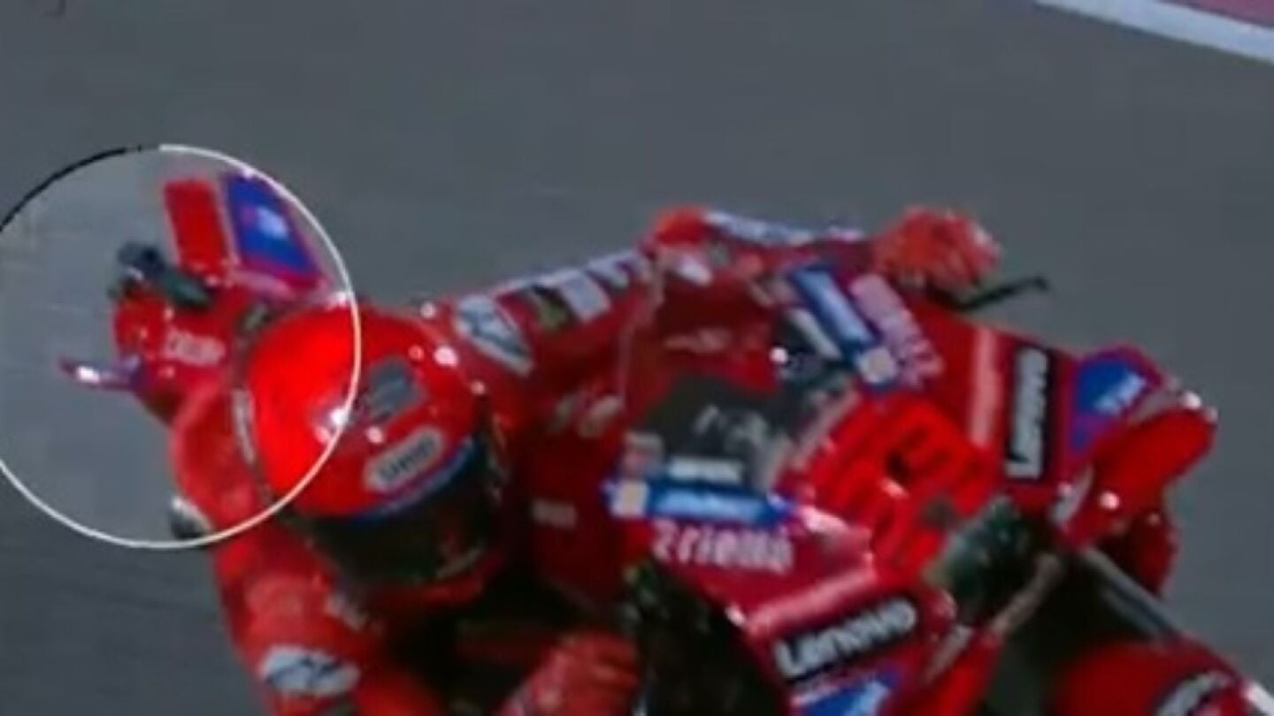 Instantes antes también adelantó a Bagnaia. El turinés le pasó en las primeras vueltas pero Márquez le devolvió la jugada después. Sin embargo, lo más destacable de todo no es la cantidad de adelantamientos que ha hecho Marc sino cómo los ha hecho. El de Cervera ha corrido toda la carrera sin su alerón derecho trasero, que ha perdido tras su toque con Álex.