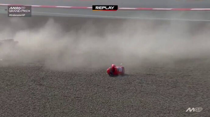 Marc dejó la imagen que nadie quería ver y al levantarse hacía sonar todas las alarmas al llevarse el brazo contrario al hombro que le ha generado tantos problemas en su carrera. El de Ducati fue trasladado al centro médico tras el traumatismo en el hombro.