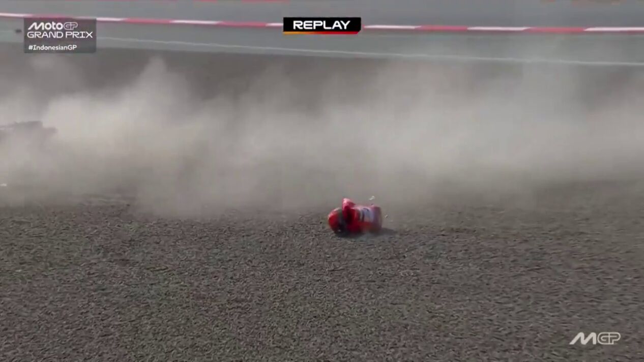 El de Cervera ha sufrido un accidente en la salida del GP de Indonesia y la preocupación ha invadido el circuito de Mandalika después de que Marc no pudiera mover el hombro tras la caída.
