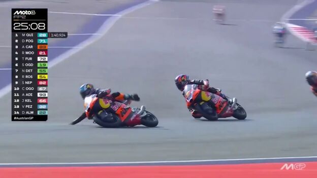 Horas después, el español se ha apuntado su primera 'pole' de la temporada en la clasificación y saldrá primero en la carrera del domingo de Moto3 en el Gran Premio de Austria. Todo en un fin de semana en el que ha provocado la que sin duda es la salvada del año.