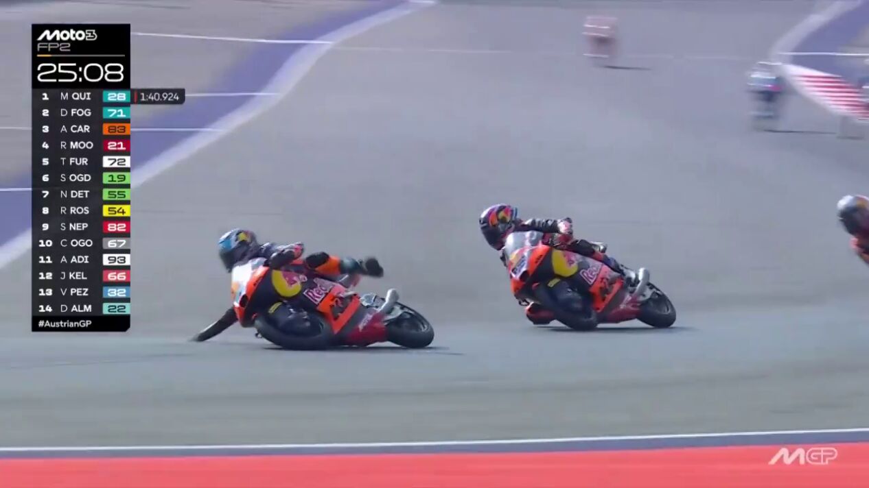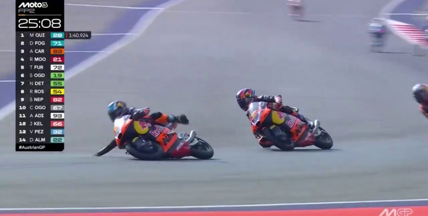 El Gran Premio de Austria ha dejado una de las imágenes más llamativas y espectaculares de lo que va de temporada. En la Práctica 2 de Moto3 en la mañana de este sábado, Valentín Perrone, piloto de KTM, ha protagonizado la que probablemente sea la salvada del año.