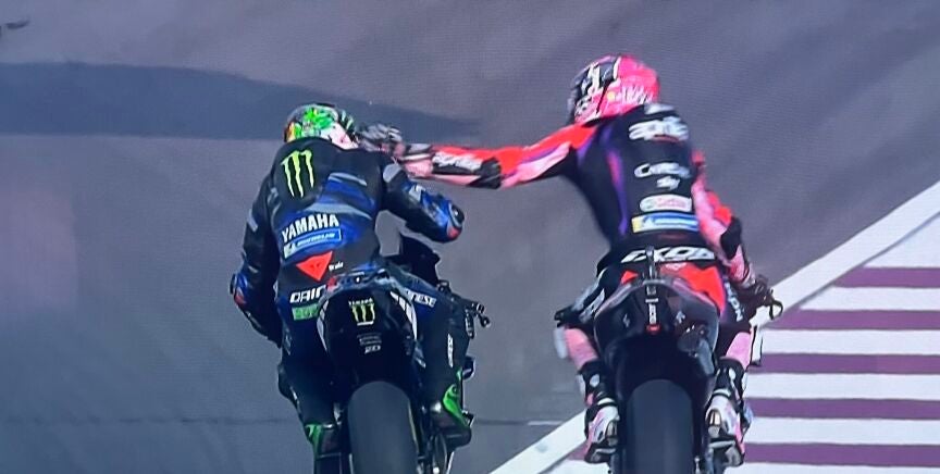 Y el peor momento llegó cuando Morbidelli le hizo un gesto para que se calmase. Esto encendió más aún a Aleix, que le agredió con un guantazo al casco mientras ambos iban en marcha.